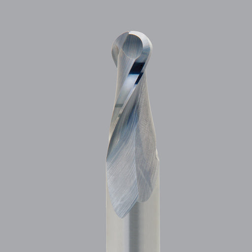52-240B, 0.125" Dia, 0.5" LOC, 0.25" Shank Dia, 2" OAL, 2 Flute Upcut Ballnose Router Bit