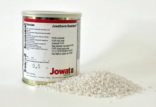 Jowat 608.01 - White Granular Unfilled Adhesive Moisture curing polyurethane hot melt in granular form. Fast setting, high initial strength, and c...