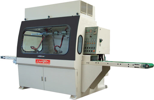 Brush sanding machine with two inclined counter-rotating brushes. The two brushes are inclined towards the feed direction. Two upper brush-sanding ...