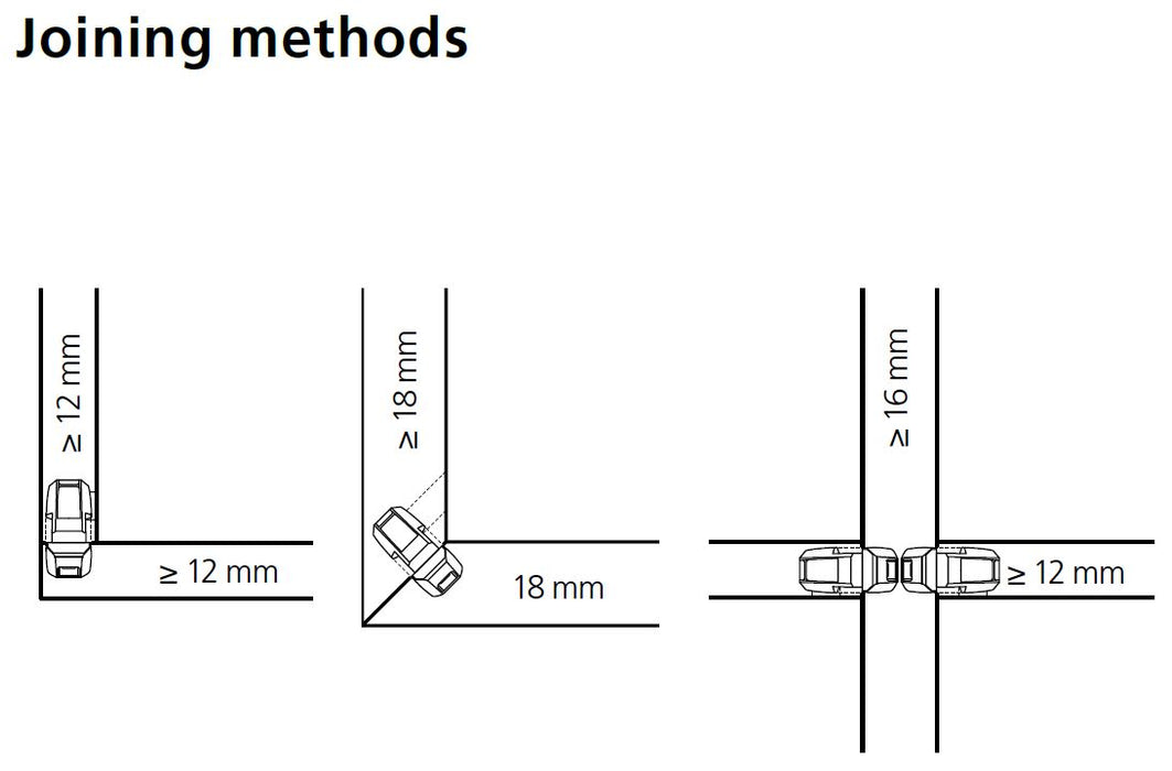 - Minimal installation depth for material as thin as 13mm (1/2") for surface or corner joints