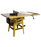 The 64B table saw, with left tilt arbor, offers 1-3/4 horsepower in dual voltage to meet the demands of the professional contractor. The transparent blade guard has independent leaves, and the quick release riving knife reduces chance of kickback. A low profile riving knife is included for non-through cuts. An arbor lock is accessed from above the table, eliminating the need for dual blade wrenches. The T-slot miter gauge has rack-and-pinion angle setting, positive stops and extension plate for expanded workpiece support. The 64B has cast iron table and wings with front edge bevel, and the working area is further expanded by the melamine-surfaced wood extension table. The exclusive Accu-Fence® system is available in 30” or 50” rip cut capacity. Storage hooks on the stand keep your accessories within reach.