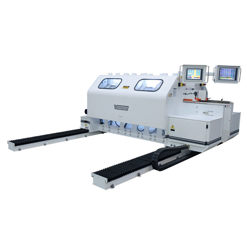 • Configured with automatic pop-up dogs that push parts into the machine up to any length