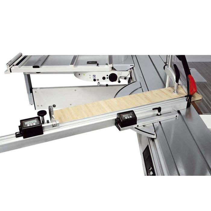 • Manual parallel fence with position readout on metric/imperial rule, sliding system on 40mm steel bar and micrometric adjustment