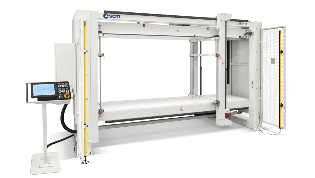 The electro mechanical cabinet clamp Action FL with manual loading/unloading and a complete automatic cycle, is the solution for the assembly of cabinets.