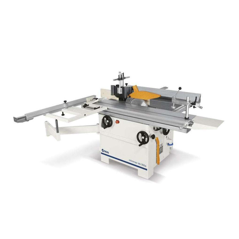The SCM Minimax Lab 300P is a versatile, professional-grade combination machine, designed to provide precision and efficiency in a compact footprint. Combining a sliding table saw, shaper, jointer, planer, and an optional mortiser, this all-in-one unit is ideal for woodworkers looking to maximize functionality without sacrificing quality. Powered by a 4 HP motor (230V, single-phase), the Lab 300P features an anodized aluminum sliding table on precision steel guideways for smooth and accurate cuts, a 315mm saw blade with optional scoring, and an adjustable shaper fence with micrometric adjustment. The jointer/planer section offers an 11.75” working width, 51.12” total surfacing table length, and a thicknessing table capable of handling stock up to 8.62” thick. Designed for safety and ease of use, it includes an integrated fence for parallel cuts and surface planning, simultaneous 90° table opening for quick access, and a newly designed dust-conveyor system for enhanced cutter block protection. With a maximum squaring stroke of 5.5’ and cutting width of 31.44” on the parallel fence, the Lab 300P is built to handle a wide range of woodworking applications with precision and reliability.