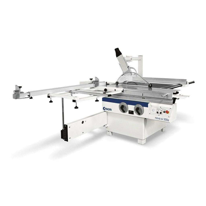 The SCM Nova SI 300S is a precision-engineered sliding table saw designed to meet the demands of professional woodworking shops. Built for accuracy and ease of use, it features an anodized aluminum sliding carriage that glides effortlessly on hardened steel "V-style" guides, ensuring smooth and precise cuts. The robust 8 HP, 3-phase (220V) main motor, complemented by a 1 HP independent scoring motor, delivers exceptional cutting performance on a wide range of materials. Equipped with an intuitive control panel, manual blade lifting and tilting, and a mechanical readout for precise angle adjustments, the Nova SI 300S prioritizes both efficiency and user convenience. Additional features such as the rip fence with micrometric adjustment, heavy-duty crosscut fence with flip stops, and the "EZ Dial" split scoring blade adjustment make setup and operation seamless. With a 50” rip capacity and a 62.9” max crosscut length, this saw is built to handle complex projects with precision and reliability. Designed for professionals who demand performance and versatility, the Nova SI 300S is the perfect solution for high-quality, repeatable cuts.