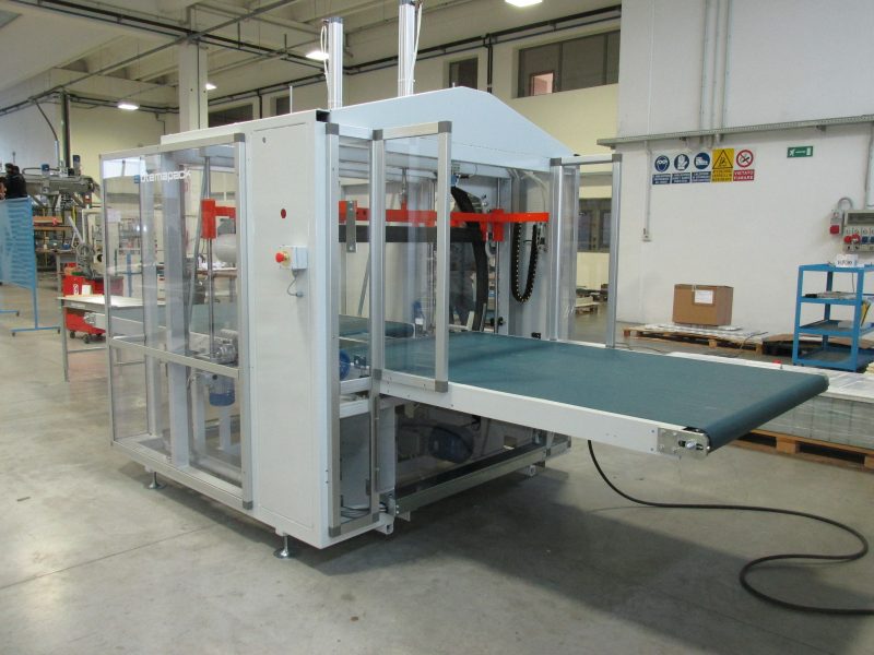 Full-automatic orbital stretch wrapping machine with 1400mm diameter ring to wrap smaller sized loads on 4 sides. Ideal ring size to wrap doors, windows, mirrors, shutters, small kitchen cabinets or similar products.
